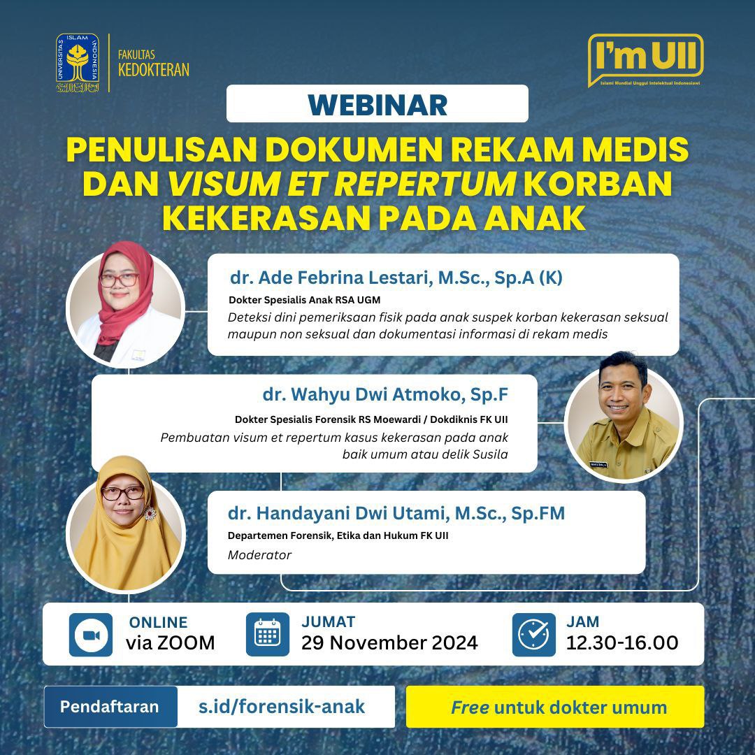 Ikuti webinar dengan tema Penulisan Dokumen Rekam Medis dan Visum et Repertum Korban Kekerasan pada Anak