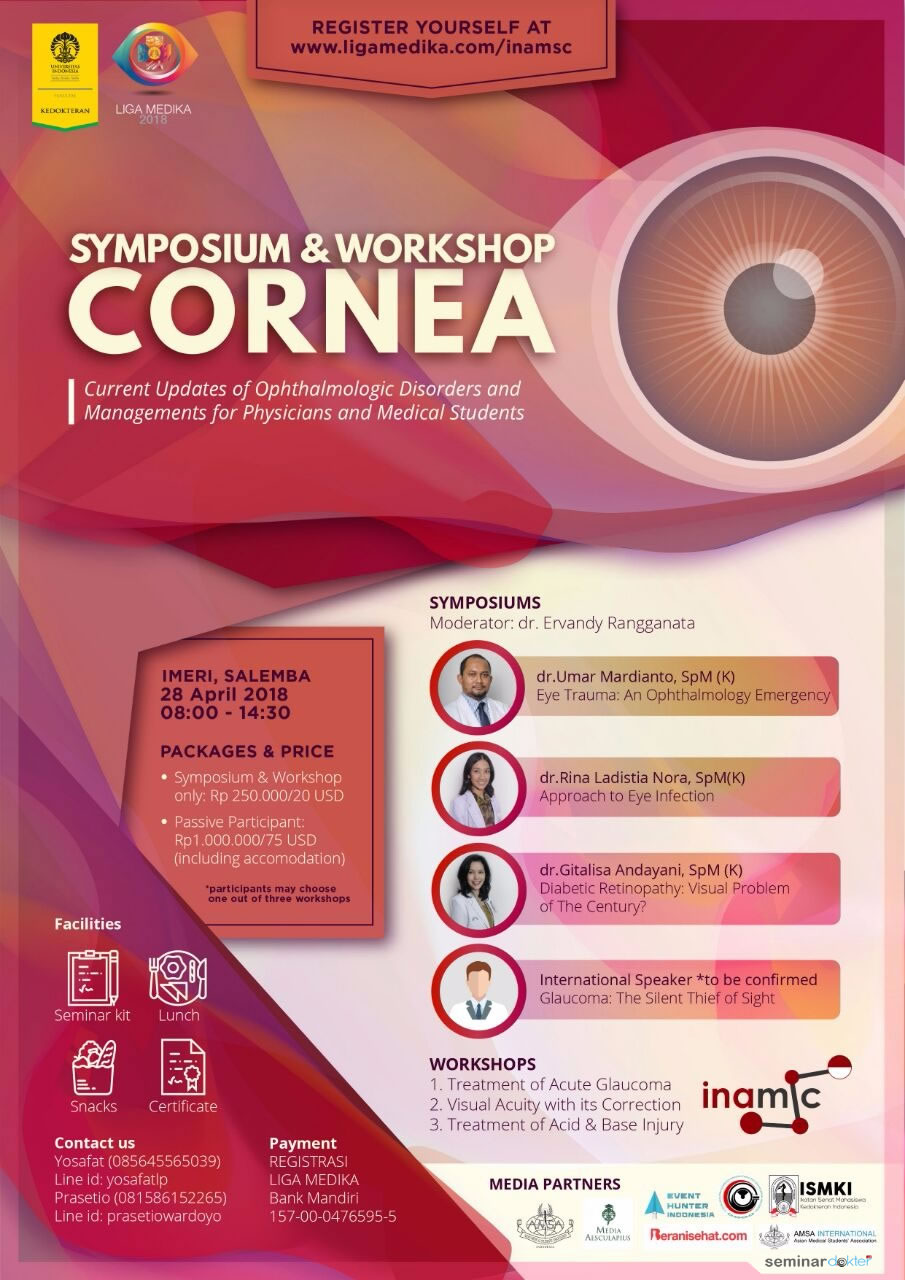 Greetings! This year, Liga Medika is raising awarness towards eye problems in Indonesia. Hence, we are offering you the opportunity to enrich your knowledge around common eye problems in Indonesia such as glaucoma, eye infection and diabetic retinopathy through our International symposium and workshop