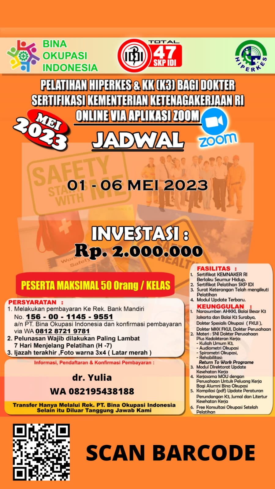 Pelatihan Hiperkes Dokter & Paramedis 2023 PT. Bina Okupasi Indonesia ONLINE Via ZOOM