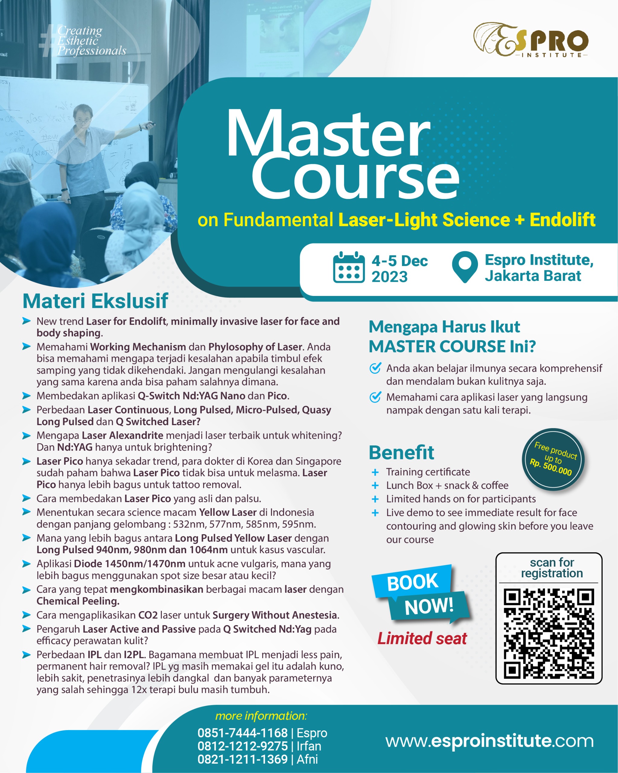 | Hands On Laser + Endolift | 5.500.000 (Earlybird) | 7.500.000 (Reguler) |