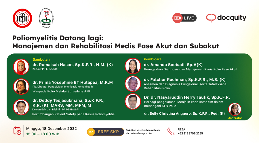 Yuk kita bahas kasus Poliomyelitis bersama PP PERDOSRI mengenai bagaimana Manajemen dan Rehabilitasi Medis Poliomyelitis pada Webinar: