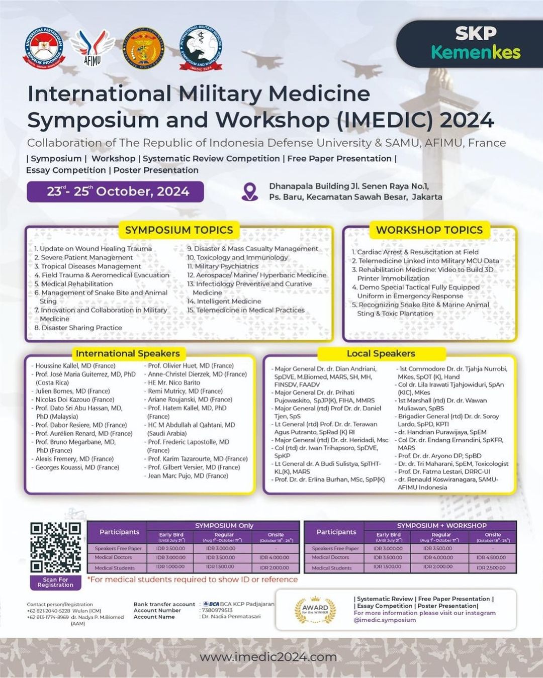 Yang kami hormati para praktisi kedokteran dan kesehatan, kami mengundang kehadirannya pada Simposium dan Workshop Internasional yang diselenggarakan oleh Fakultas Kedokteran Militer Unhan RI🇮🇩 bekerjasama dengan AFIMU, Universite de Guyane, France🇫🇷