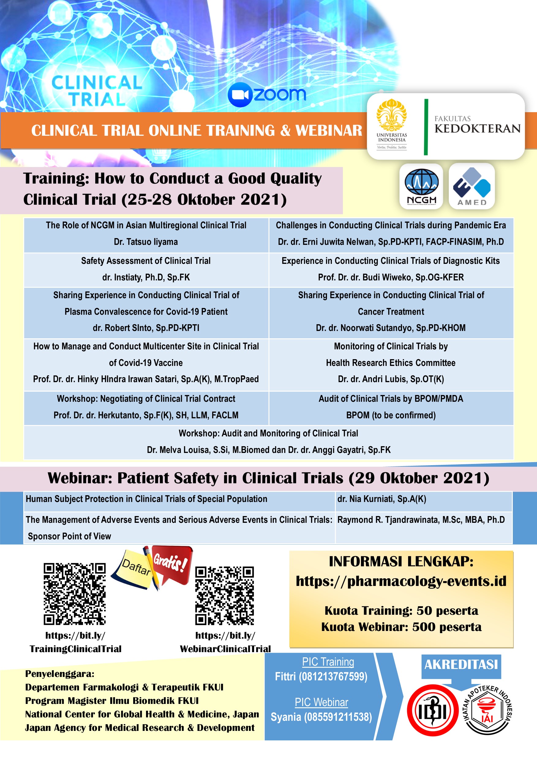 1. Training “How to Conduct a Good Quality Clinical Trial” (25-28 Oktober 2021) - terbatas 50 peserta dengan undangan.