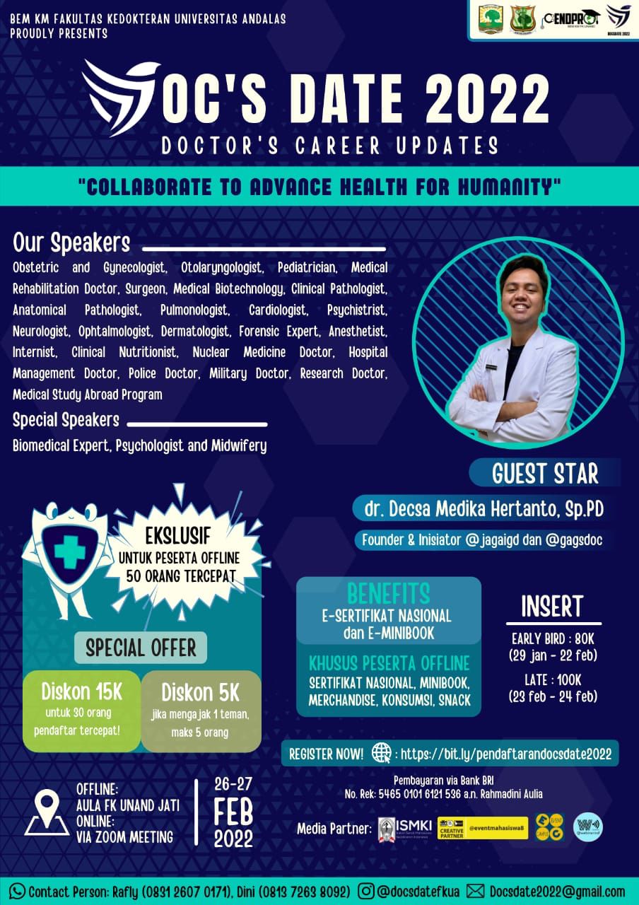Merupakan acara talkshow tentang seputar karir kedokteran, menghadirkan narasumber di segala bidang spesialis, dokter polisi, dokter militer dan dokter penelitian. Lalu kami juga mengundang pemateri spesial yang membahas karir di kebidanan, biomedis dan psikologi