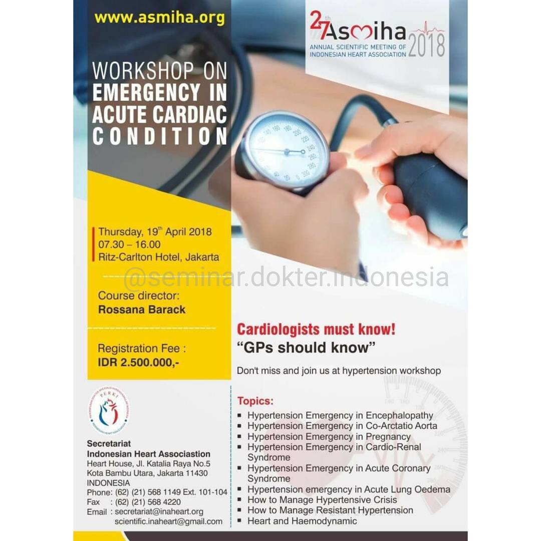 Workshop on Emergency in Acute Cardiac Condition dilaksanakan pada 19 April 2018 di Ritz Carlton, Jakarta