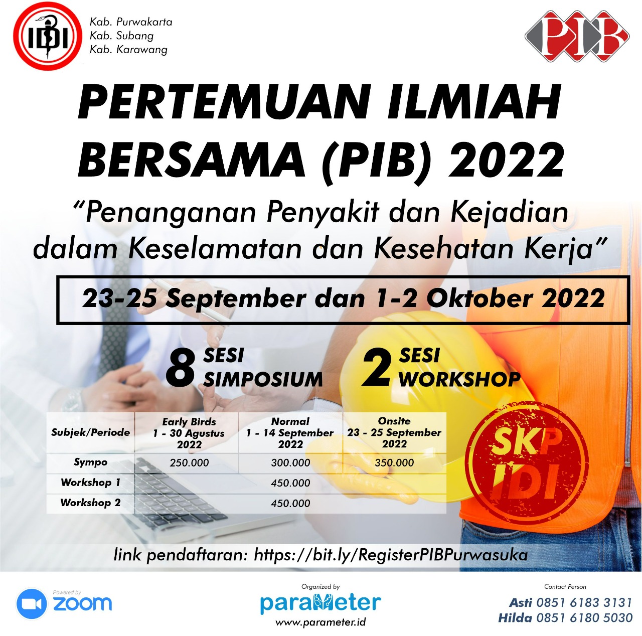 Menyikapi hal tersebut, sebagai media dalam upaya meningkatkan kewaspadaan (awareness) dan peningkatan pengetahuan/kemampuan maka IDI PURWASUKA yang terdiri dari Cabang Kabupaten Purwakarta, Cabang Kabupaten Subang dan Cabang Kabupaten Karawang berprakarsa menyelenggarakan kegiatan Pertemuan Ilmiah Bersama (PIB) dengan mengangkat tema Penanganan Penyakit dan Kejadian dalam Keselamatan dan Kesehatan Kerja, pada :