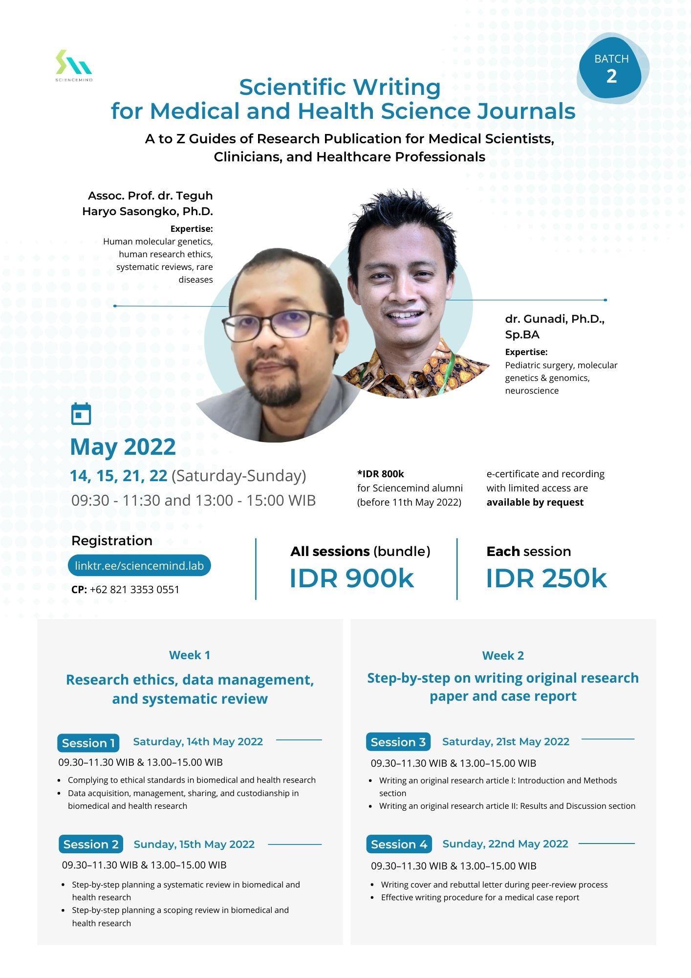 | All Sessions (bundle) for Sciencemind Alumni | 800.000 (Earlybird) | 800.000 (Reguler) |