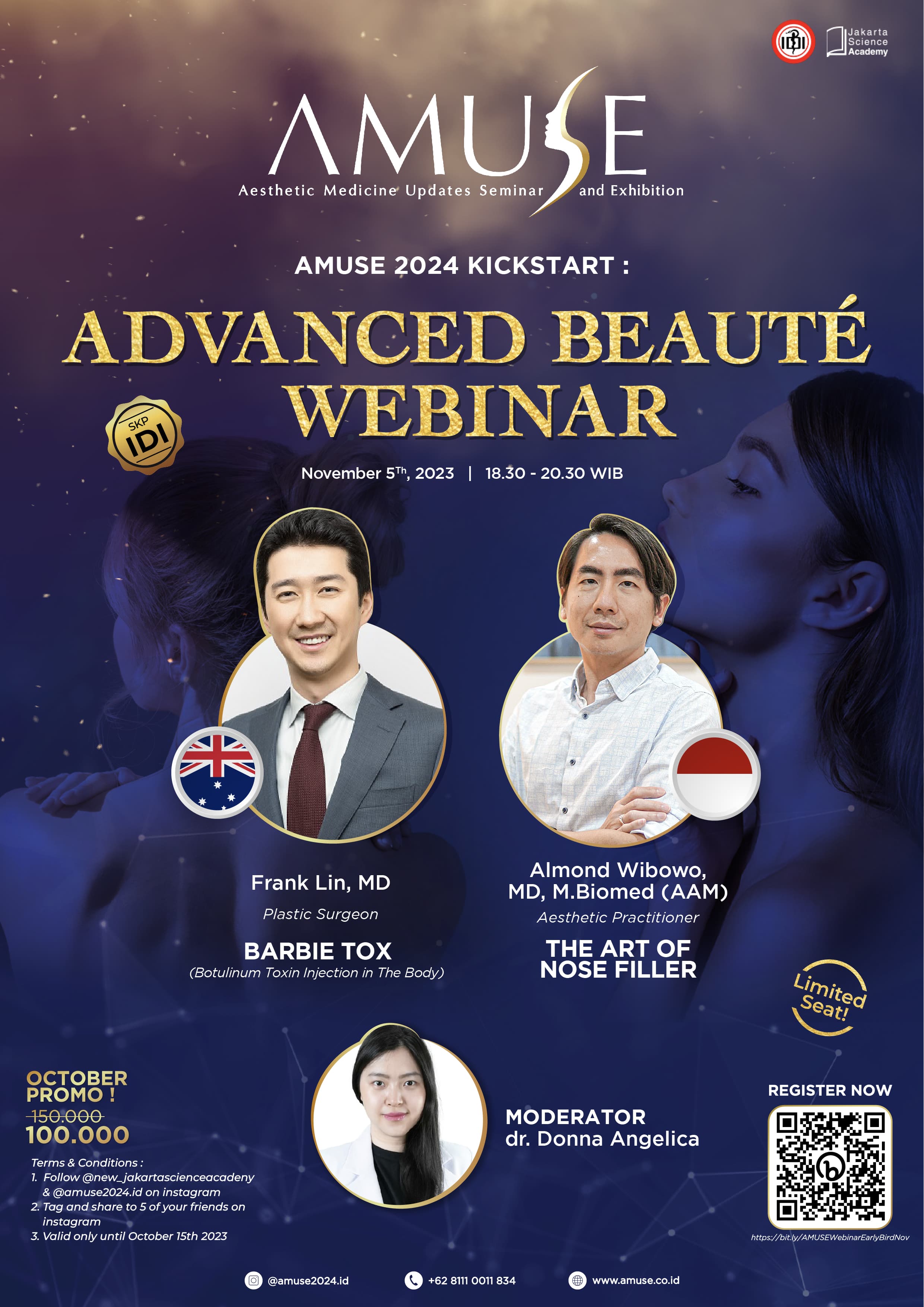 | Dokter Umum, Dokter Estetik, Dokter Spesialis Kulit, Dokter Spesialis Bedah Plastik | 100.000 (Earlybird) | 150.000 (Reguler) |