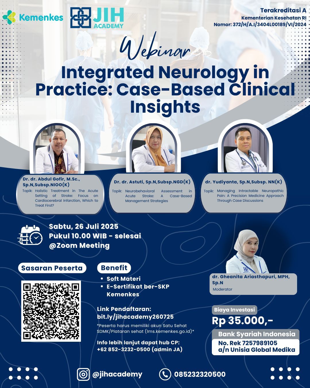 JIH Academy kembali menghadirkan webinar spesial untuk tenaga medis dan profesional kesehatan dengan tema “Integrated Neurology in Practice: Case-Based Clinical Insights”.