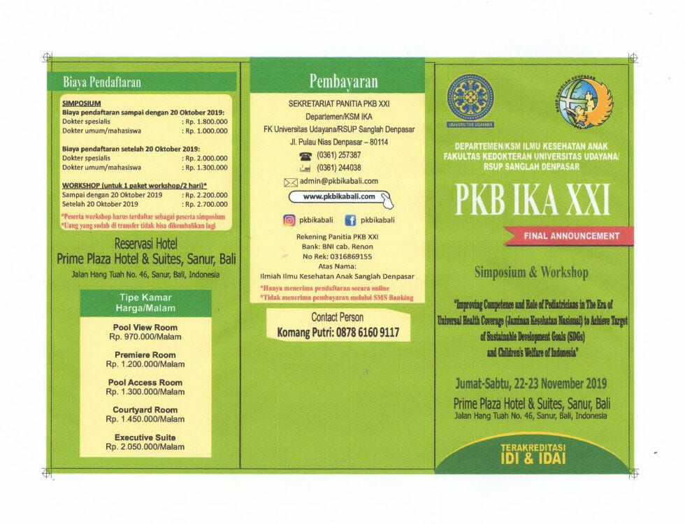 Yuk... daftar segera! Symposium dan Workshop PKB XXI IKA Bali, 22-23 November 2019, @Prime Plaza Hotel & Suites, Sanur Bali. More Info, Komang Putri : 087861609117 website: www.pkbikabali.com