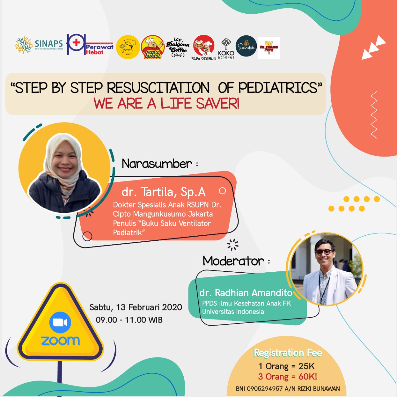 Kita jawab semua pertanyaan teman-teman mengenai resusitasi pada anak. Selain itu kita juga akan melakukan diskusi seputar kemungkinan-kemungkinan yang terjadi saat resusitasi. Jadi tunggu apa lagi?! Yuk langsung aja daftar yah workshopnya!