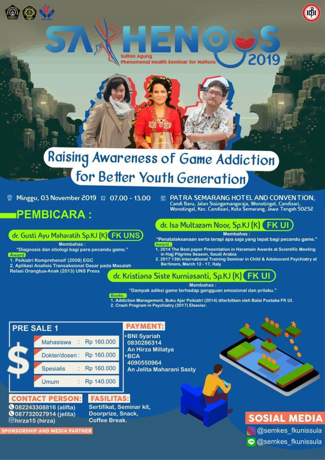 ‼️ FK UNISSULA proudly presents‼️ Sultan Agung Phenomenal Health Seminar for Nations “Raising Awareness of Game Addiction for Better Youth Generation”