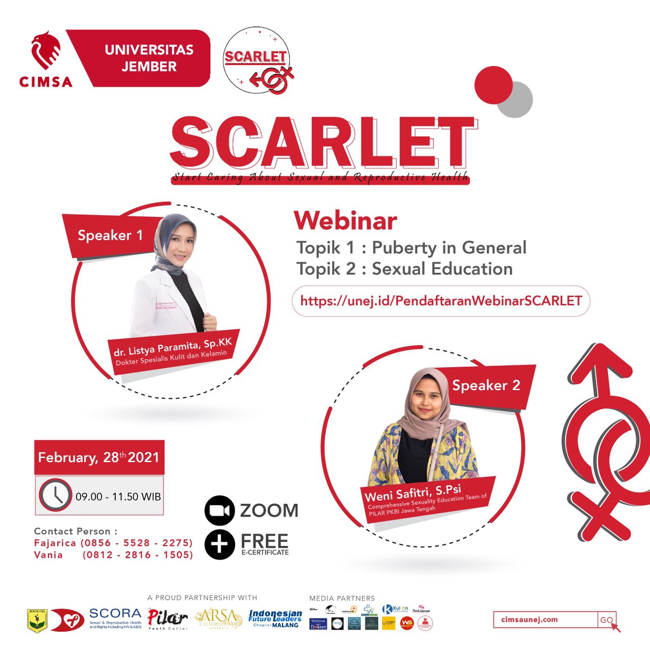 Dalam rangka memperingati Sexual and Reproductive Health Awareness Day, CIMSA UNEJ akan mengadakan event webinar yang bertajuk “SCARLET : Start Caring about Sexual and Reproductive Health Awareness Day”