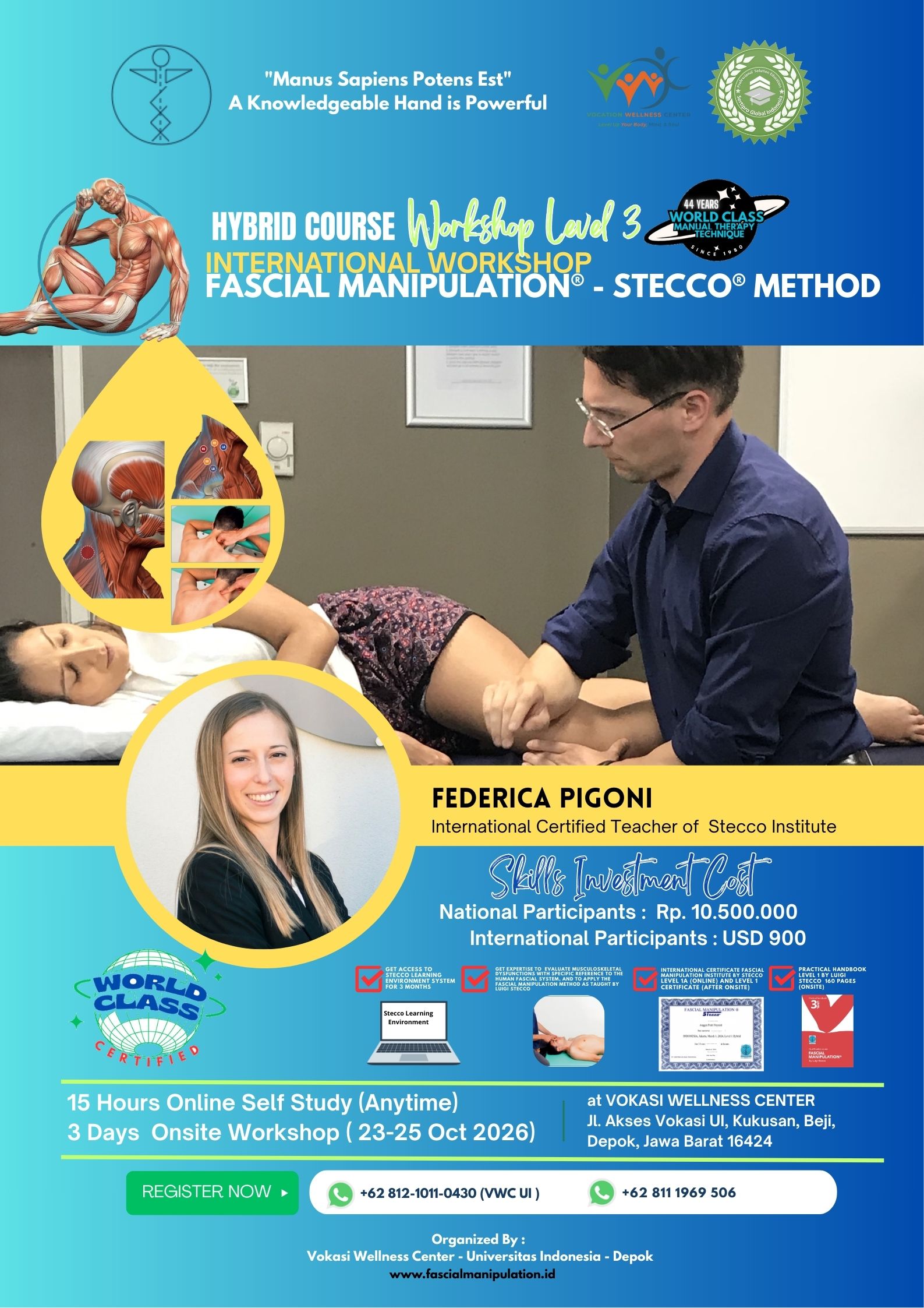 Persyaratan Untuk Ikut Workshop Ini : Telah Mengikuti Level 1 dan Mempunyai Sertifikat Stecco Institute Level 2