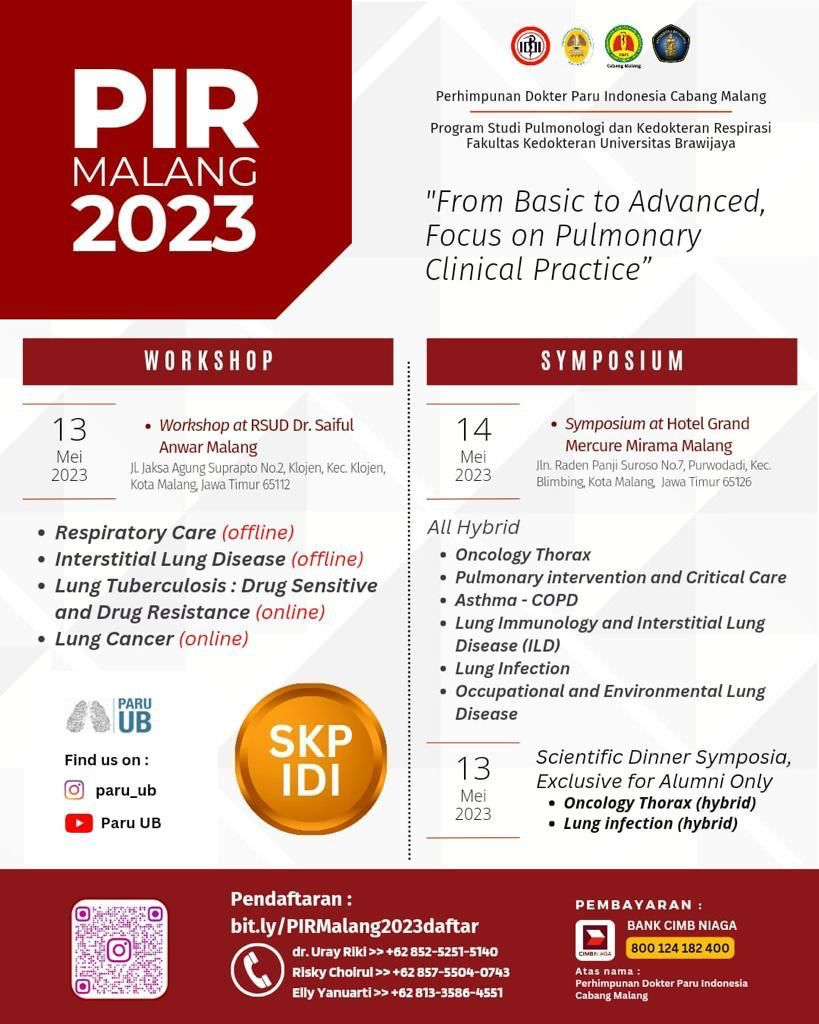 PIR Malang 2023 : From Basic to Advanced, Focus on Pulmonary Clinical Practice yang diselenggarakan pada: