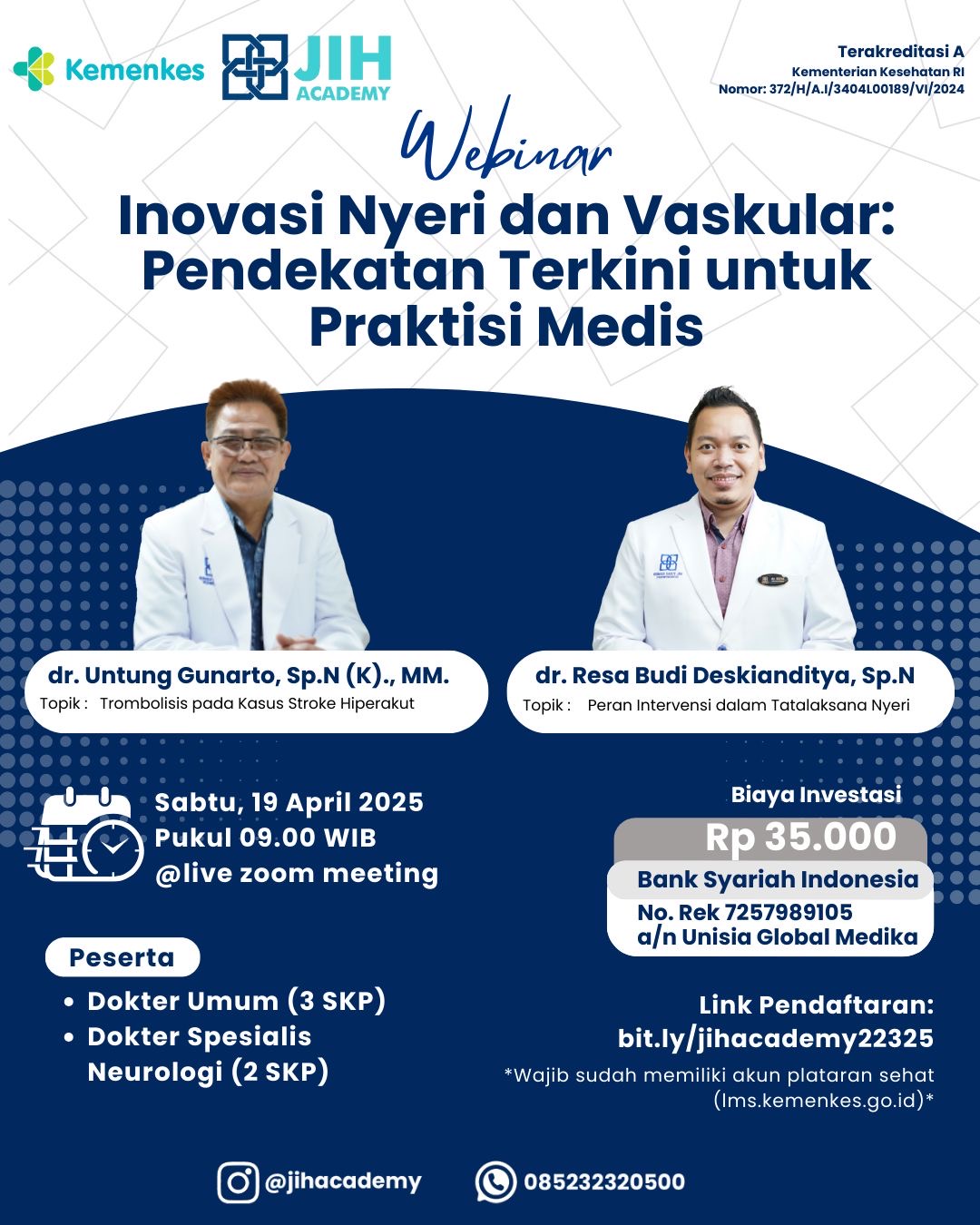 Ada Webinar ber-SKP Kemenkes RI lho dengan judul ✨“Inovasi Nyeri dan Vaskular: Pendekatan Terkini untuk Praktisi Medis" ✨