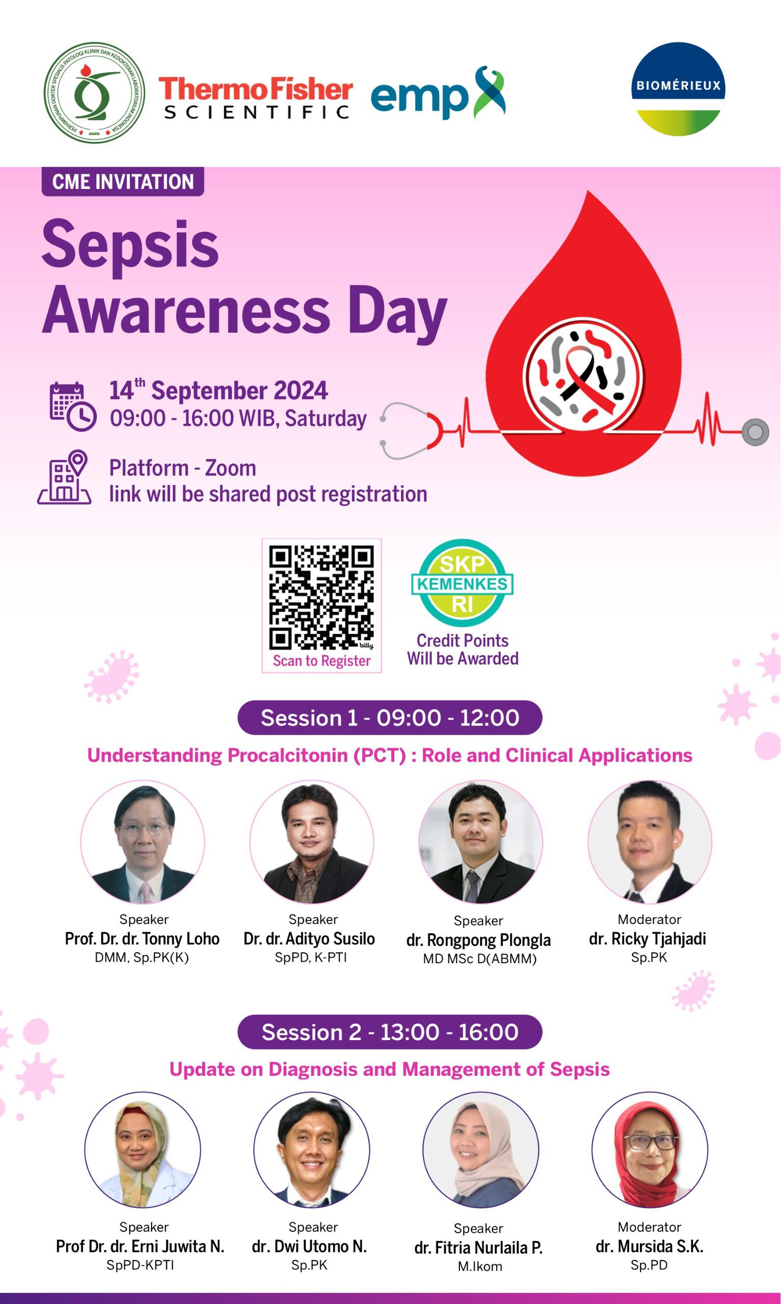 bioMerieux Indonesia dan PT. Enseval Medika Prima berkolaborasi dengan Thermo Fisher Scientific, PDS PATKLIN JAKARTA dan Internal Medicine Advancement Foundation, mengundang untuk menghadiri acara Scientific Seminar : Sepsis Awareness Day yang akan diadakan: