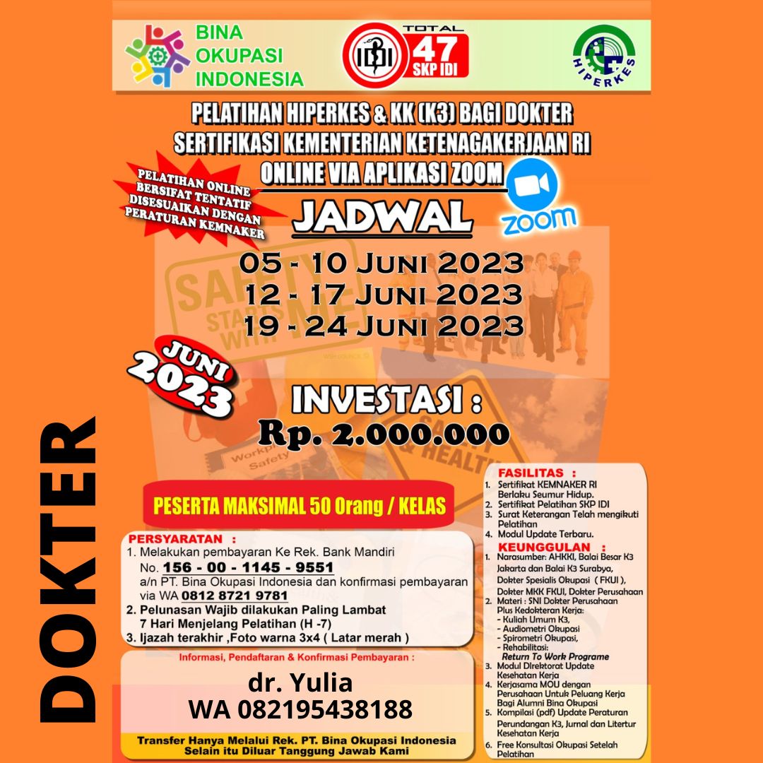 Pelatihan Hiperkes Dokter & Paramedis 2023 PT. Bina Okupasi Indonesia ONLINE Via ZOOM