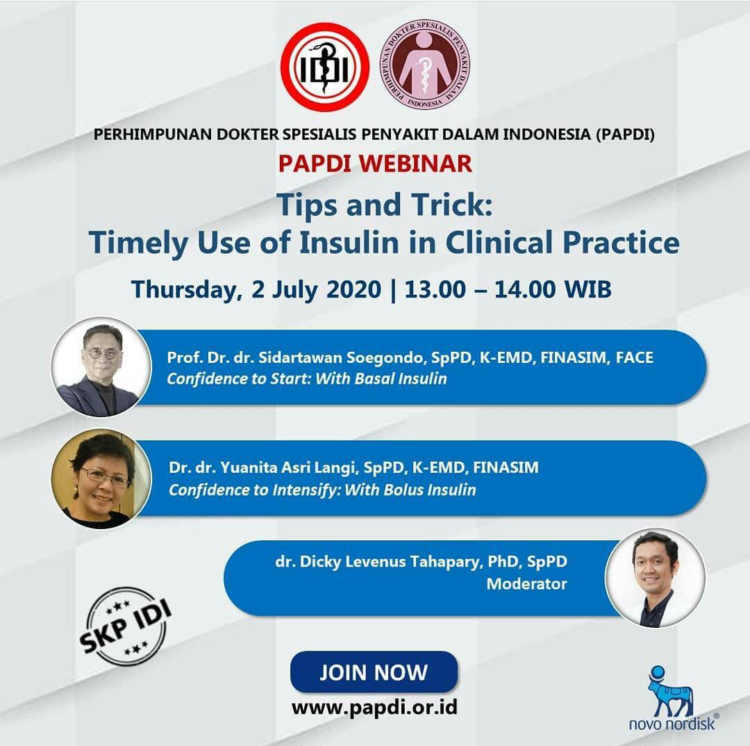 Seminar PAPDI Tips and Trick Timely Use of Insulin in Clinical Practice Thursday 2 July 2020 13.00 - 14.00 WIB