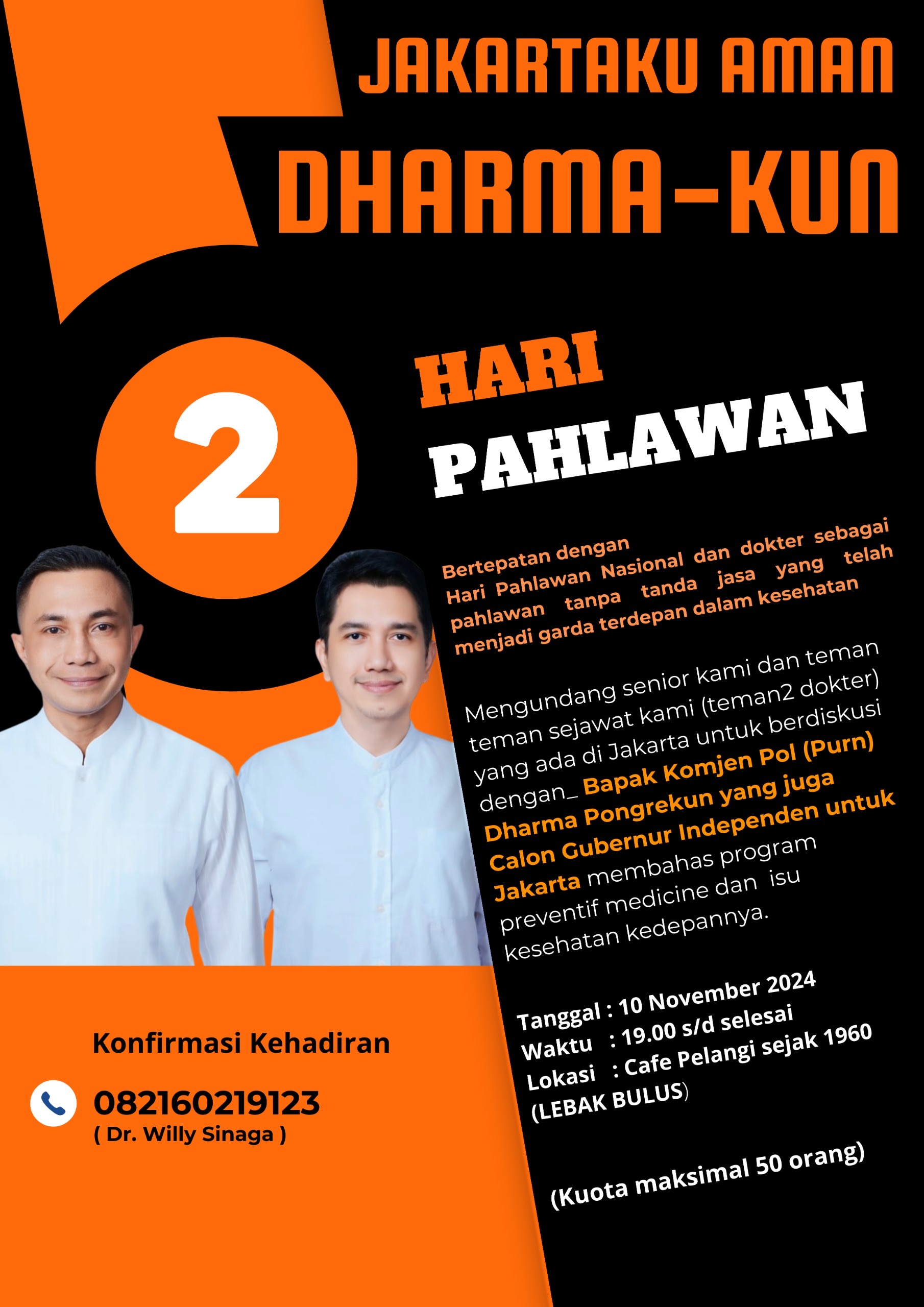 Mengundang senior kami dan teman teman sejawat kami (teman2 dokter ) yang ada di Jakarta untuk berdiskusi dengan_ Bapak Komjen Pol (Purn) Dharma Pongrekun yang juga Calon Gubernur Independen utk Jakarta membahas program preventif medicine dan isu kesehatan kedepannya.