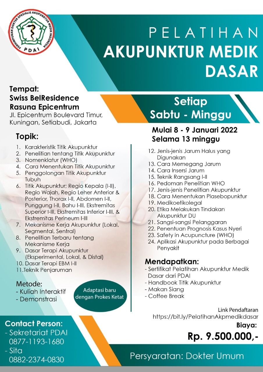 | Panitia: | Perhimpunan Dokter Spesialis Akupunktur Medik |