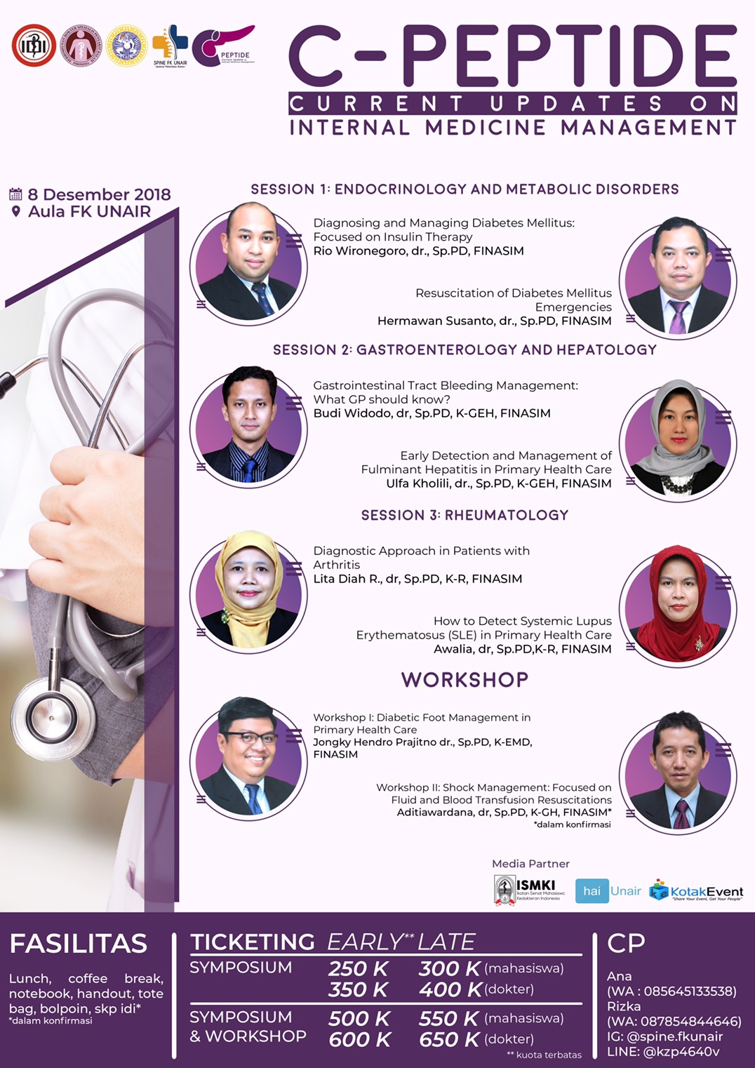 Panitia Pelantikan Dokter Fakultas Kedokteran Universitas Airlangga bekerja sama dengan Departemen Penyakit Dalam RSUD Dr Soetomo dengan bangga mempersembahkan C-PEPTIDE 2018 (“Current Updates on Internal Medicine Management”)!