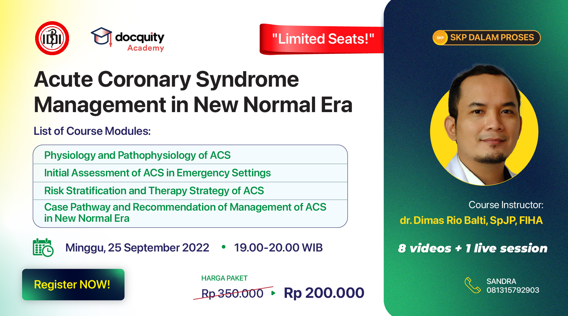 Docquity Academy mengundang sejawat untuk mengikuti “Acute Coronary Syndrome Management in New Normal Era” bersama dr. Dimas Rio Balti, SpJP, FIHA.