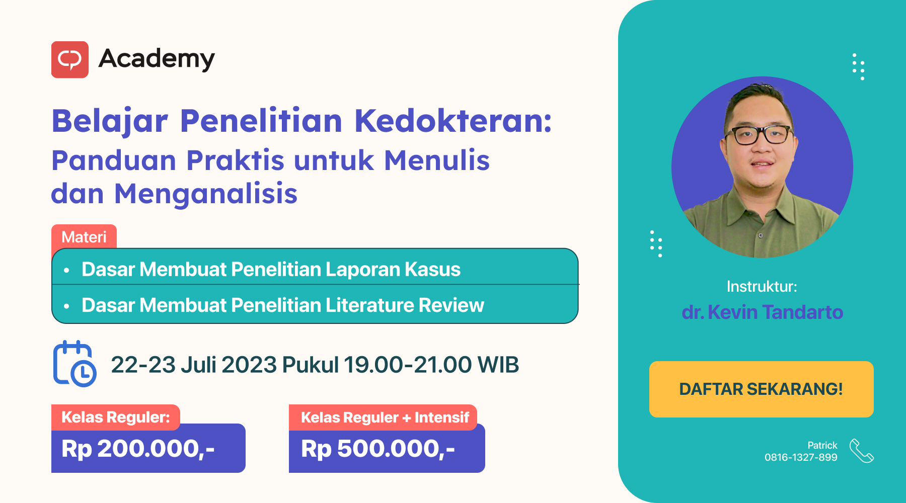 | Dokter Umum | 200.000 (Earlybird) | 500.000 (Reguler) |