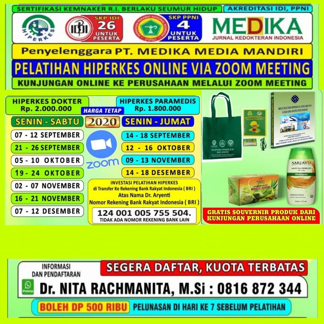 1. Buku Modul Hiperkes dan Seminar Kit (Tas pelatihan, Pulpen, Name Tag dan Buku Notes) dikirimkan melalui Pos sebelum Pelaksanaan Pelatihan Hiperkes.