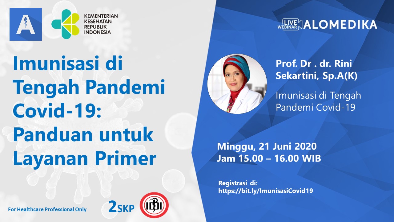 Webinar ini membahas topik mengenai "Imunisasi di Tengah Pandemi Covid-19" dibawakan oleh Prof. Dr. dr. Rini Sekartini, Sp.A(K) - ketua Ikatan Dokter Anak Indonesia Cabang DKI Jakarta (IDAI JAYA) dan Penulis Buku Intisari Imunisasi. Panduan lengkap untuk pelaksanaan Imunisasi di Layanan Primer - apa imunisasi yang bisa diberikan, apa yang bisa ditunda, kapan, bagaimana.