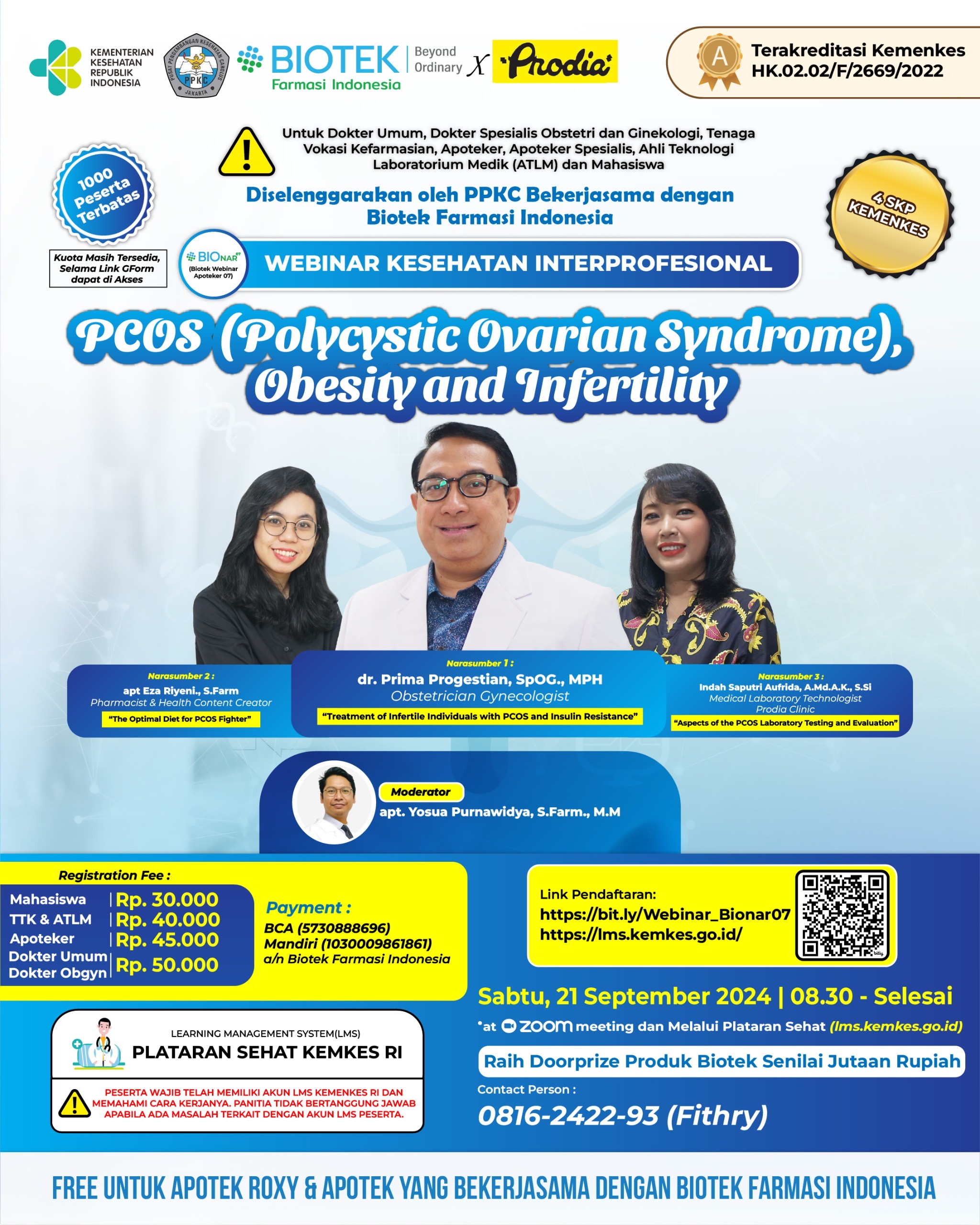 Yuk, pelajari lebih dalam tentang hal ini di Webinar Kesehatan Interprofessional ‘’PCOS (Polycystic Ovarian Syndrome), Obesity and Infertility’’ kamu akan mempelajari berbagai topik mengenai penanganan individu infertil dengan PCOS dan insulin, diet optimal untuk penderita PCOS, serta aspek-aspek penting dalam pengujian dan evaluasi laboratorium PCOS.