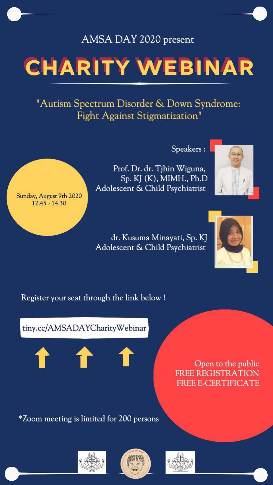C. Webinar: Webinar sebagai bagian dari main event, yang menjelaskan tentang Autism Spectrum Disorder & Down Syndrome, cara berperilaku yang benar, serta mematahkan stigma pada masyarakat mengenai penderita Autism Spectrum Disorder & Down Syndrome.