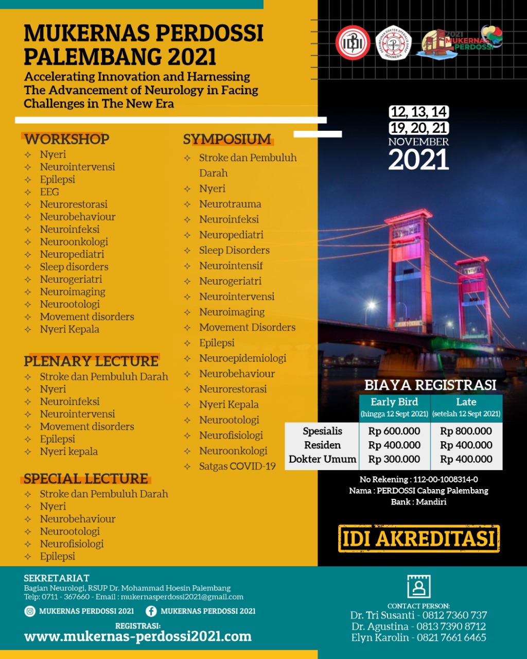akan menggelar acara MUKERNAS PERDOSSI PALEMBANG 2021