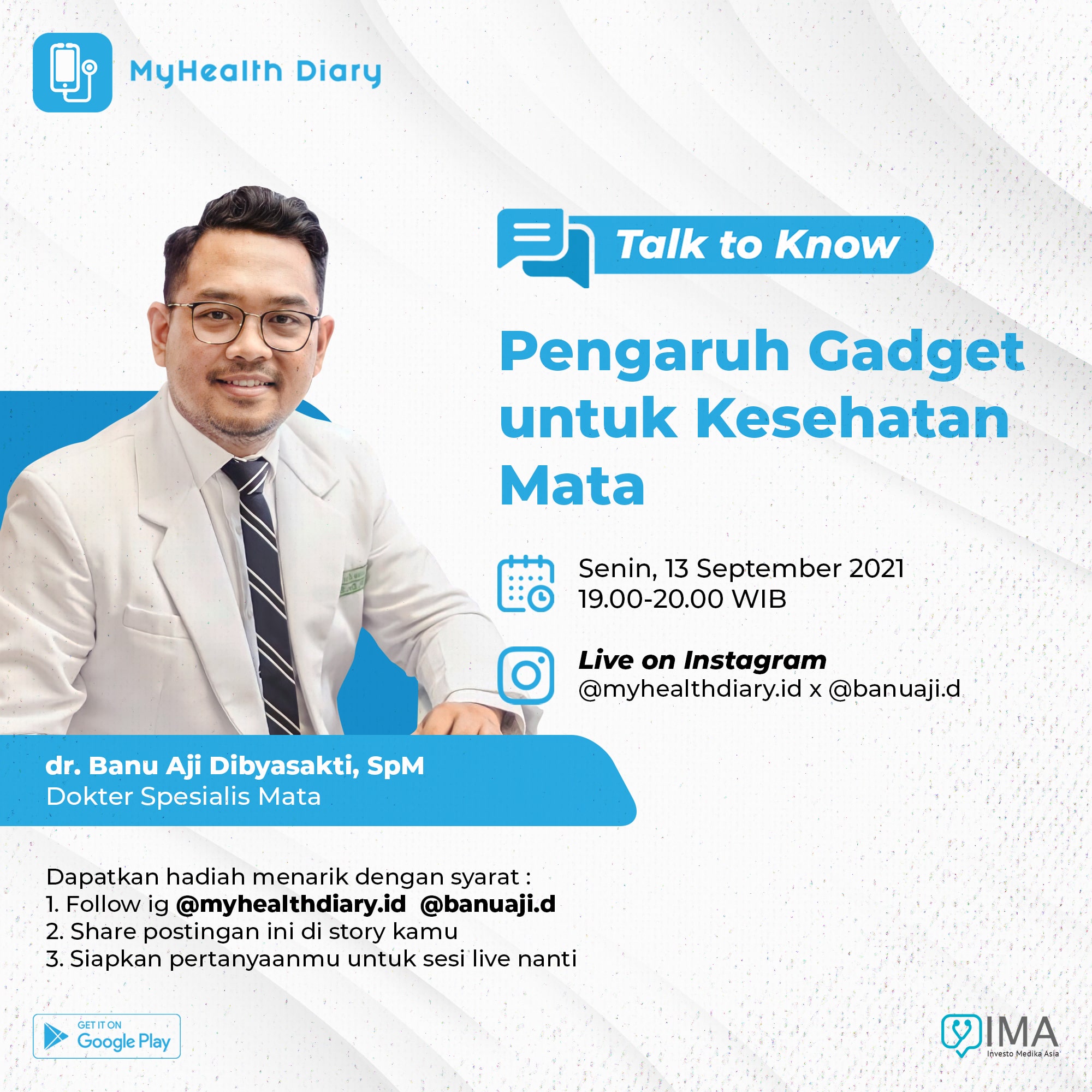 Nah, jangan lewatkan Instagram Live bersama dokter spesialis mata @banuaji.d yang akan membahas
