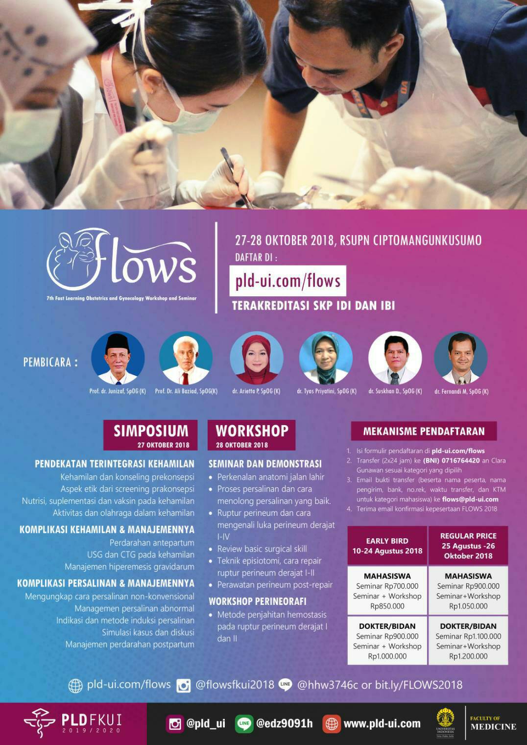 Panitia Lulusan Dokter Universitas Indonesia berkolaborasi dengan Departemen Obstetri dan Ginekologi FKUI-RSCM dengan bangga mempersembahkan FLOWS 2018 (Fast Learning Obstetrics and Gynaecology Workhshop and Seminar)