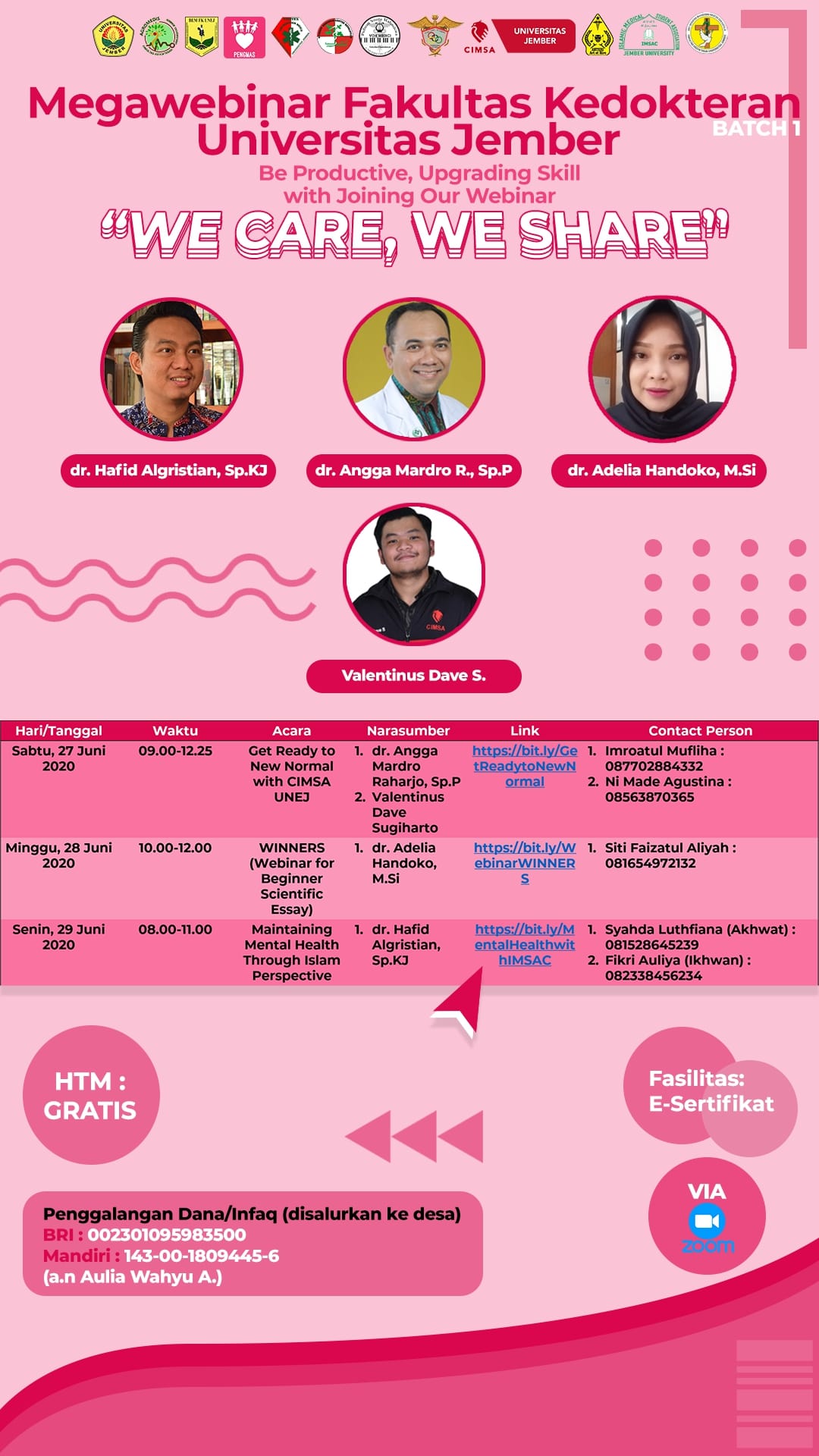 Mega webinar FK UNEJ Batch 1 akan dilaksanakan pada :