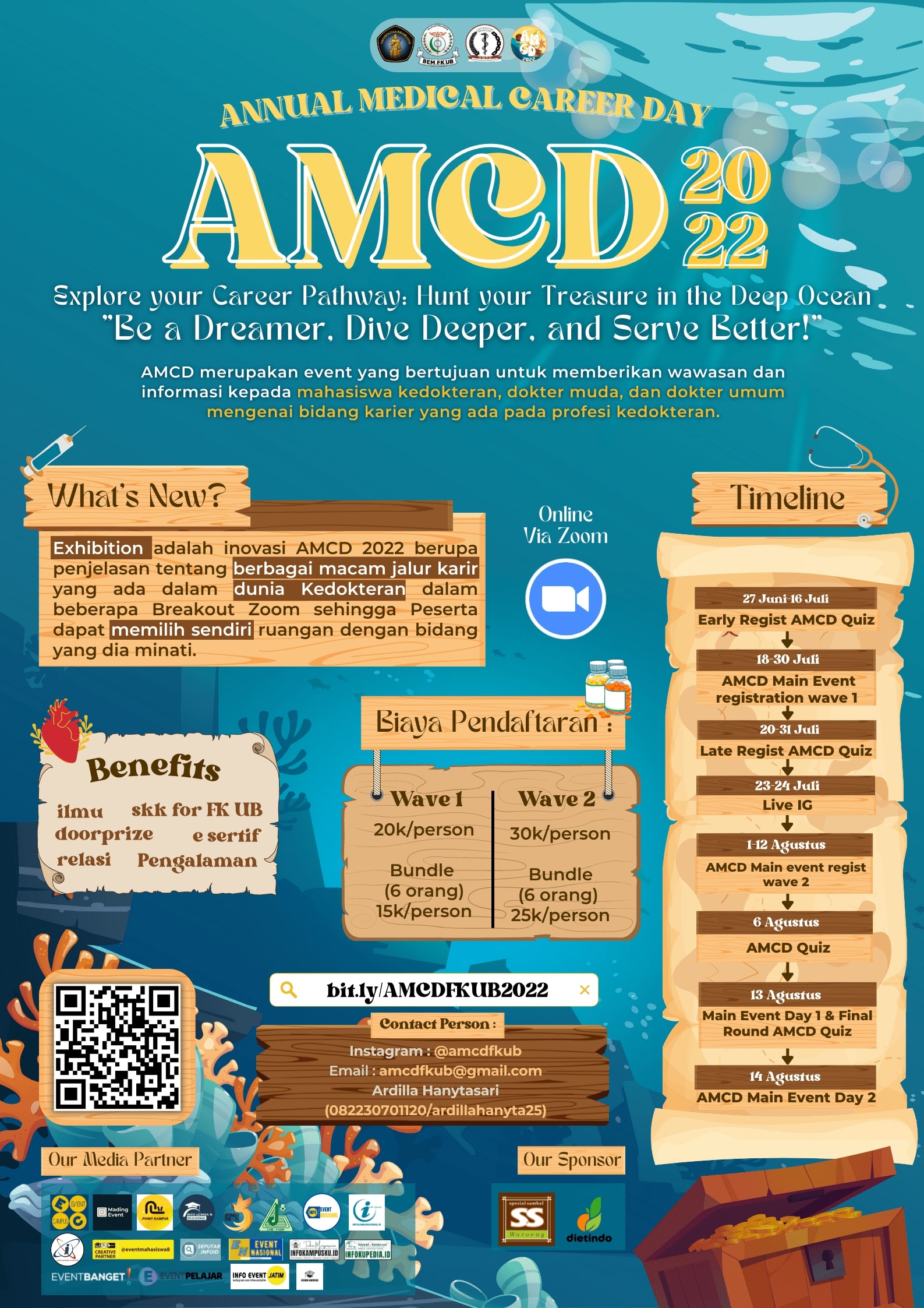 AMCD (Annual Medical Career Day) merupakan event mengenai karir kedokteran yang ditujukan bagi mahasiswa kedokteran di seluruh Indonesia yang diselenggarakan oleh HMPD (Himpunan Mahaiswa Pendidikan Dokter) FK UB. AMCD menghadirkan berbagai kegiatan diantaranya cerdas cermat serta webinar dan talkshow bersama dokter - dokter dengan karir yang beragam.