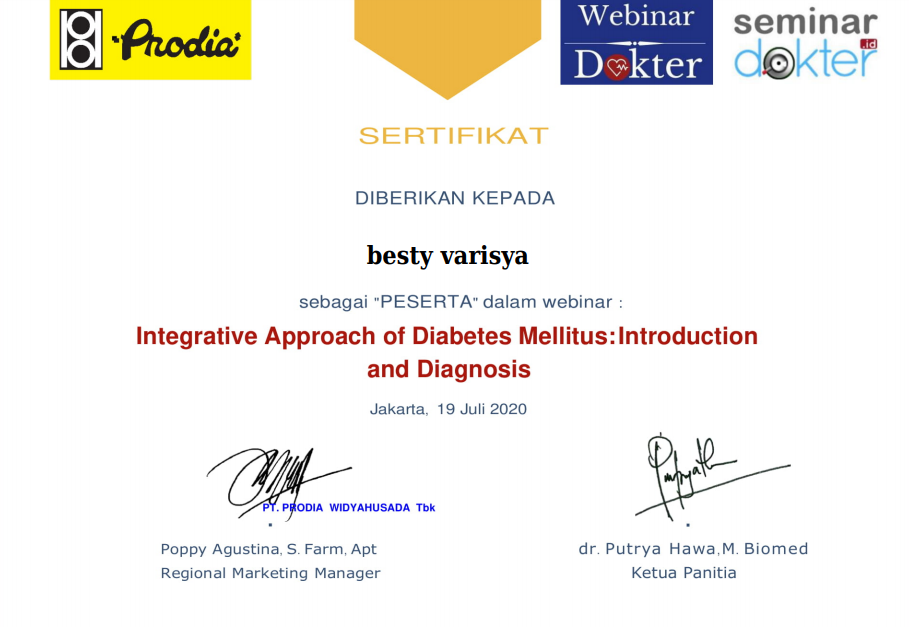 Selain mendapatkan ilmu dari orang orang yang kompeten di bidang kesehatan, Anda juga akan mendapatkan sertifikat. Sertifikat akan menjadi bukti Anda telah menjadi peserta dari seminar dan pelatihan kesehatan yang diikuti.