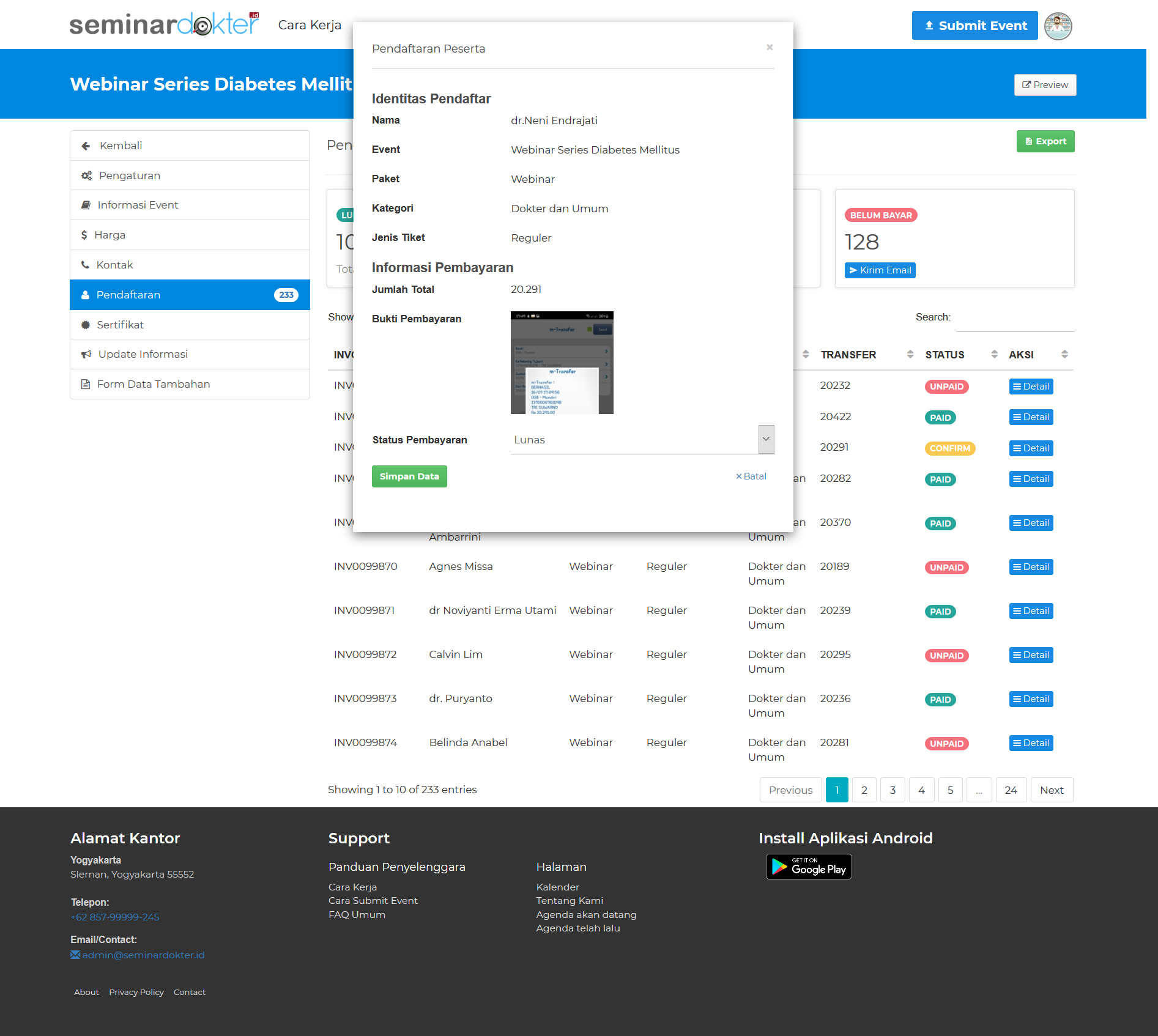 Berikut ini ialah cara melihat data pendaftar dan konfirmasi pembayaran di Seminardokter.