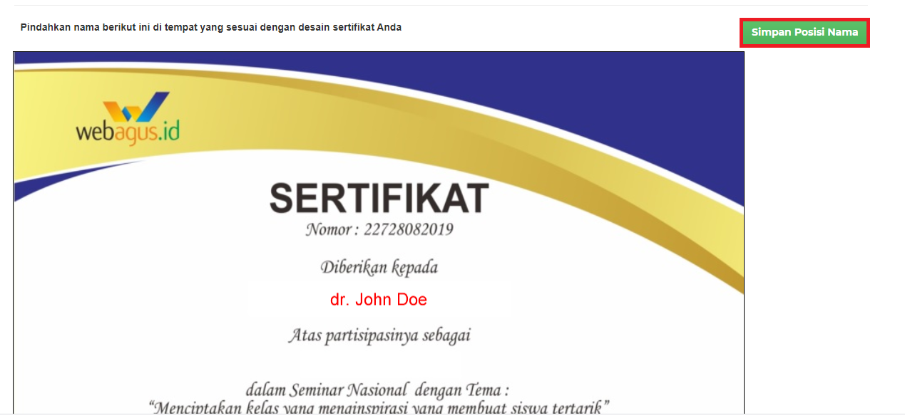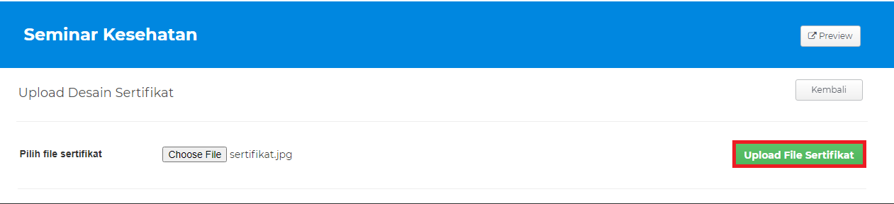 Selesai, kini sertifikat telah selesai diupload dan siap dibagikan untuk semua peserta yang mengikuti seminar yang dilaksanakan.