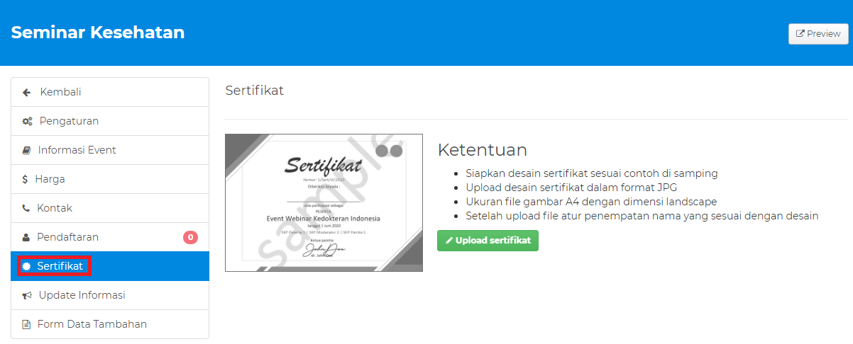 Di Seminardokter, Anda bisa langsung mengunggah sertifikat secara cepat dan mudah. Sehingga proses pemberian sertifikat kepada para peserta bisa dilakukan dengan efisien dan lebih efektif.