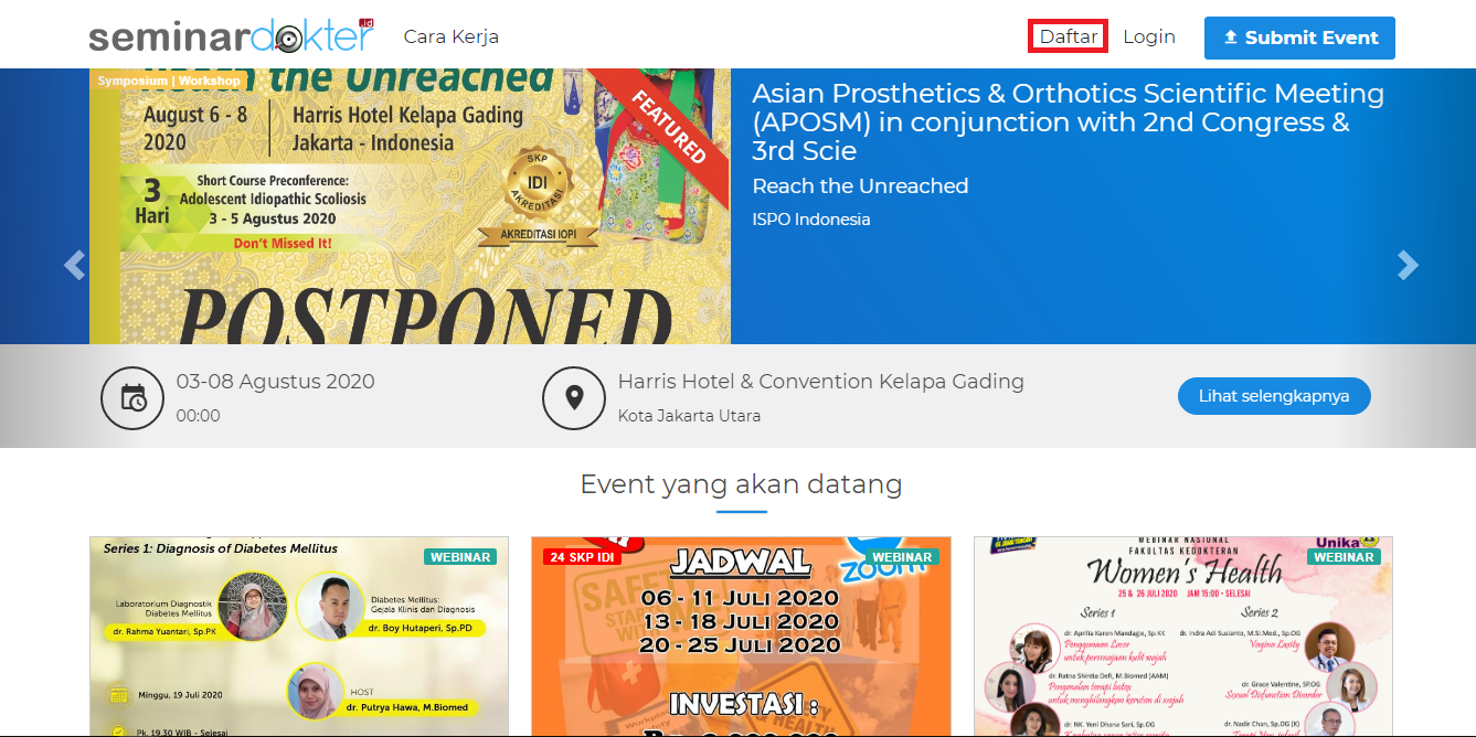 Tertarik untuk bergabung dengan platform Seminardokter? Daftarkanlah diri Anda dengan mengikuti langkah langkah dibawah ini.