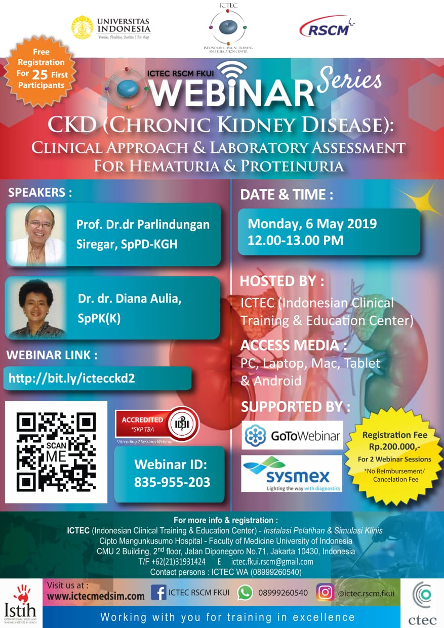 , ICTEC RSCM FKUI bekerjasama dengan Departemen Ilmu Penyakit Dalam RSCM FKUI mengadakan Webinar Series Dengan Tema : WEBINAR CKD SERIES