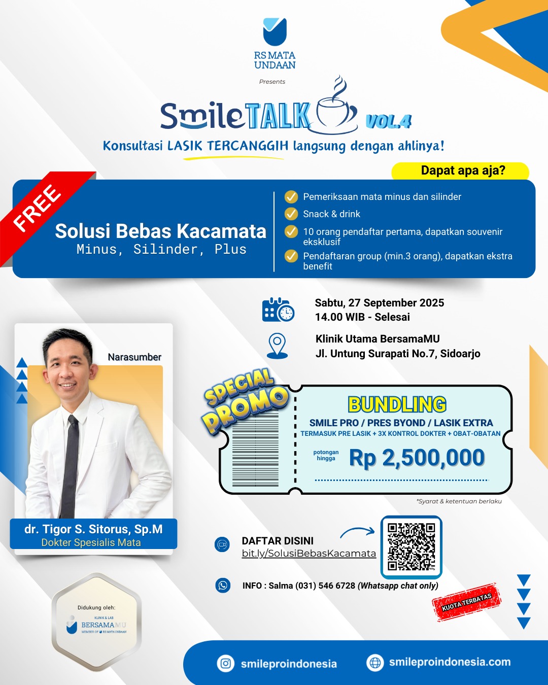 #SmileTalkVol.4 #SolusiBebasKacamata #SMILEPro #LASIK #LASIKPresbyond #LasikExtra #RSMataUndaan #BersamaMU