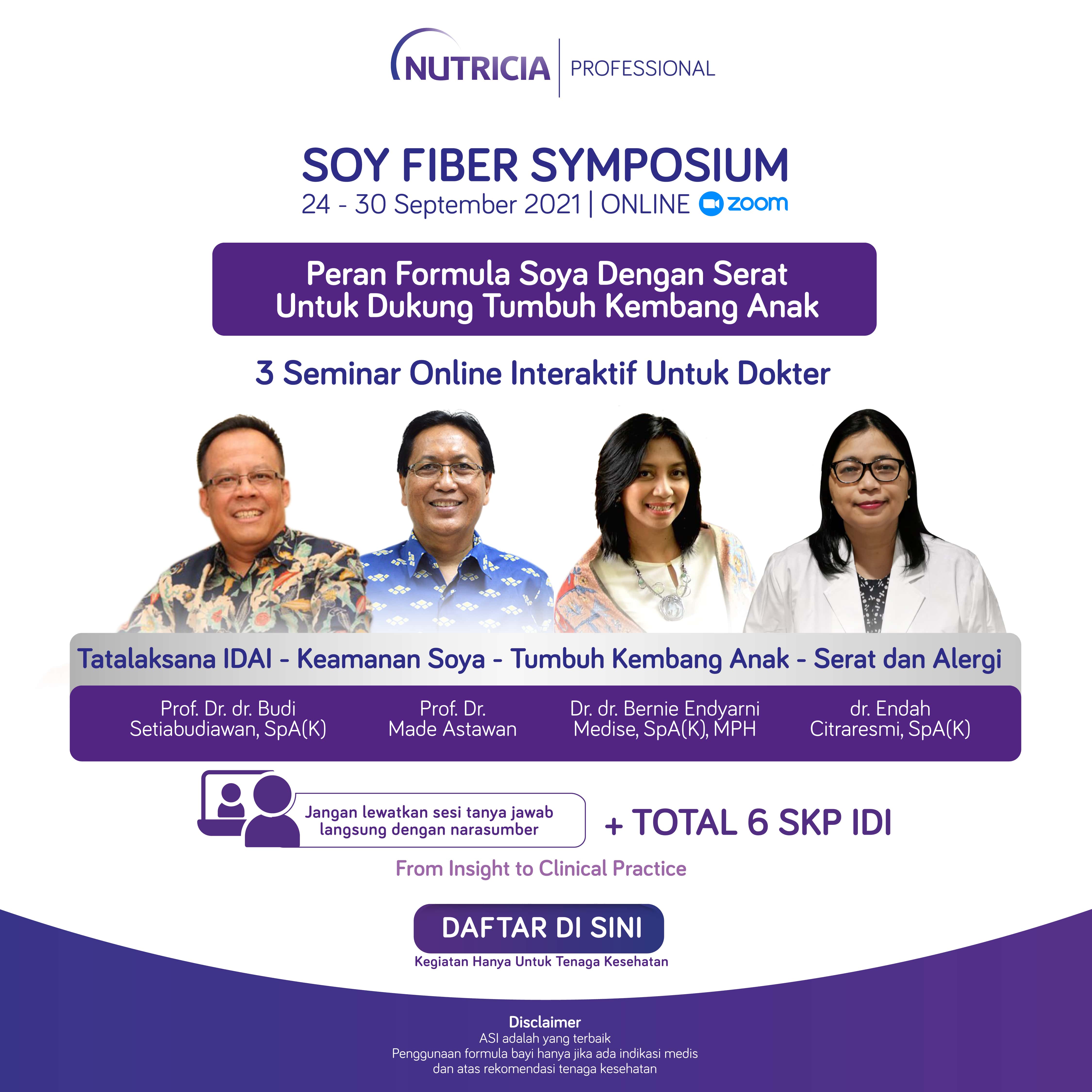 Jangan lewatkan SOY FIBER SYMPOSIUM virtual pada 24 - 30 September 2021 mulai pukul 19:00 – 20:30 WIB.