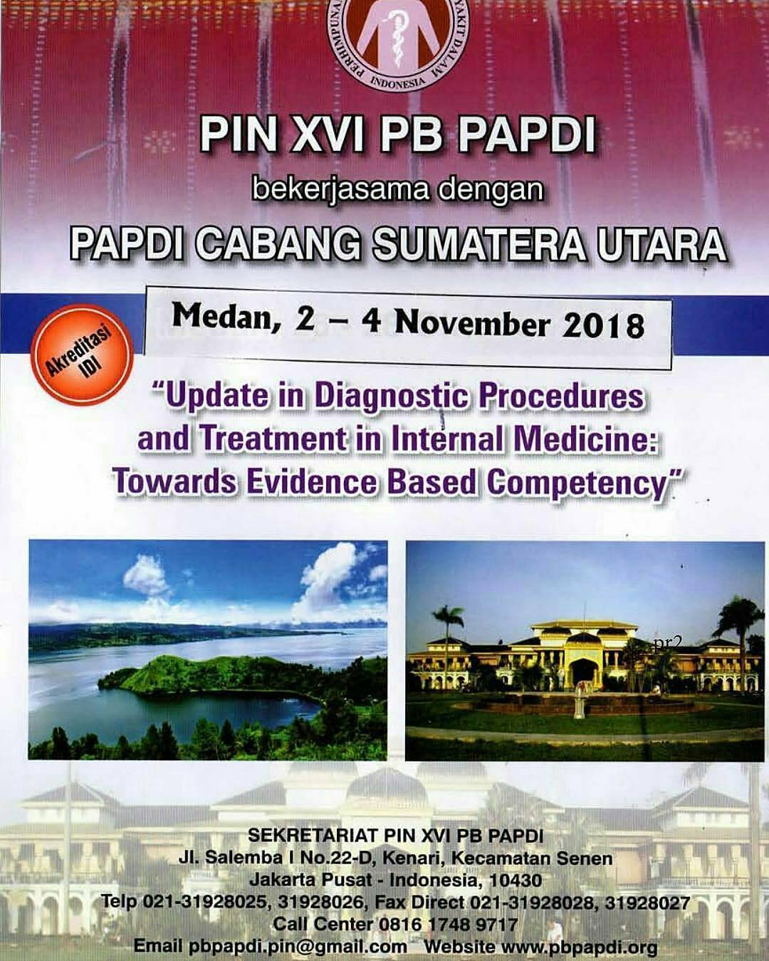 Update in Diagnostic Procedures and Treatment in Internal Medicine yang bertema Toward Evidence Based Competency akan dilaksanakan di Medan, 2 - 4 November 2018.