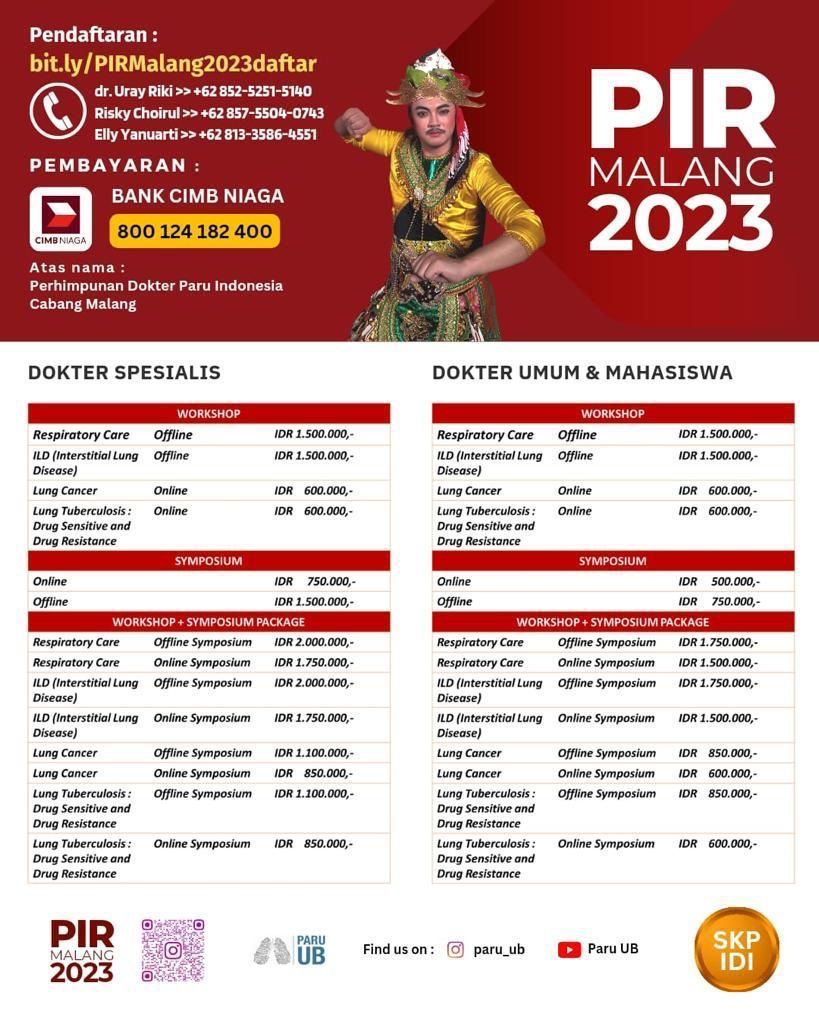 Jangan lewatkan PIR malang 2023, PDPI Cabang Malang dan Prodi Pulmonologi dan Ilmu Kedokteran Respirasi FKUB yang diselenggarakan pada: