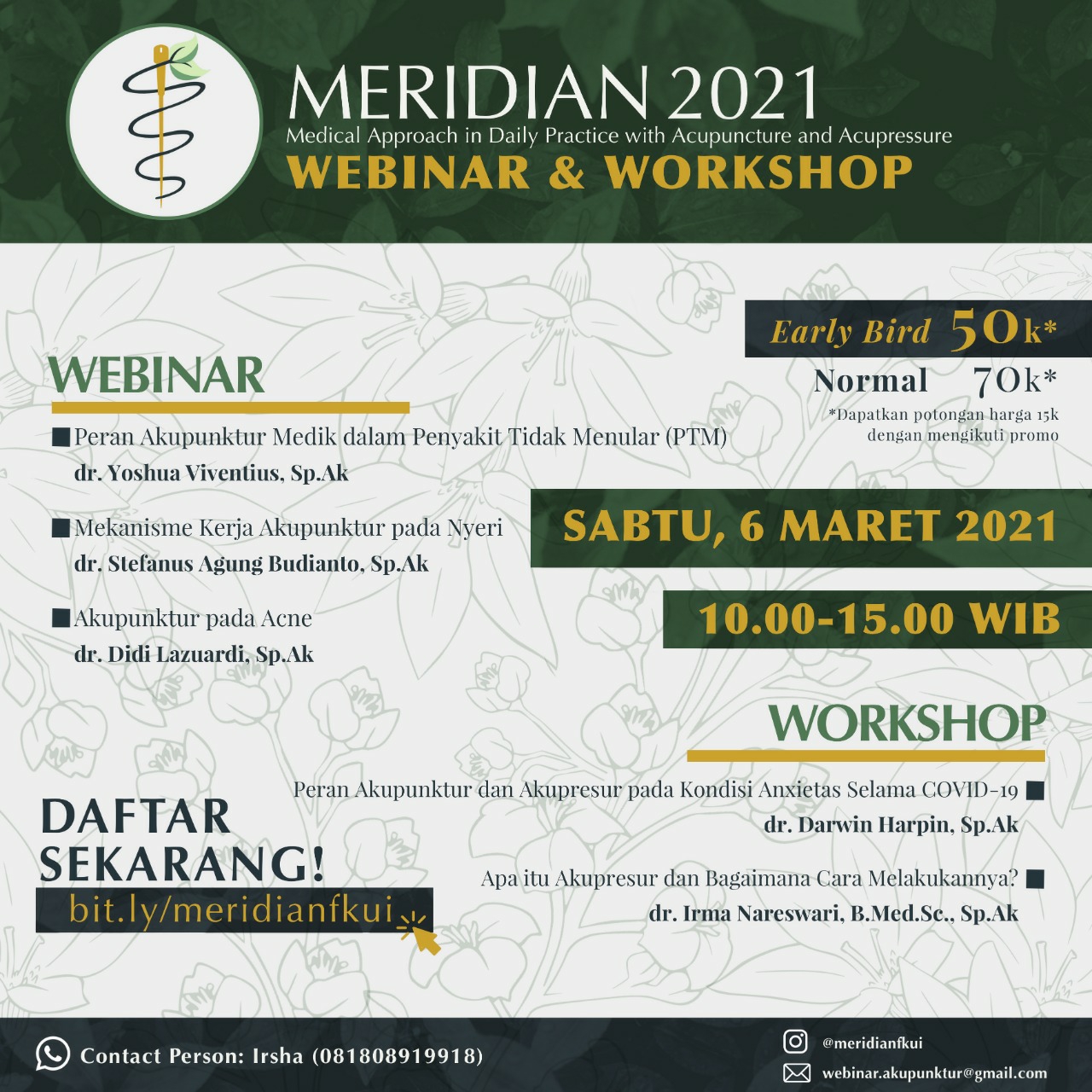 Telah dibuka pendaftaran untuk Webinar dan Workshop daring dengan topik Ilmu Akupunktur: Medical Approach in Daily Practice with Acupuncture and Acupressure!