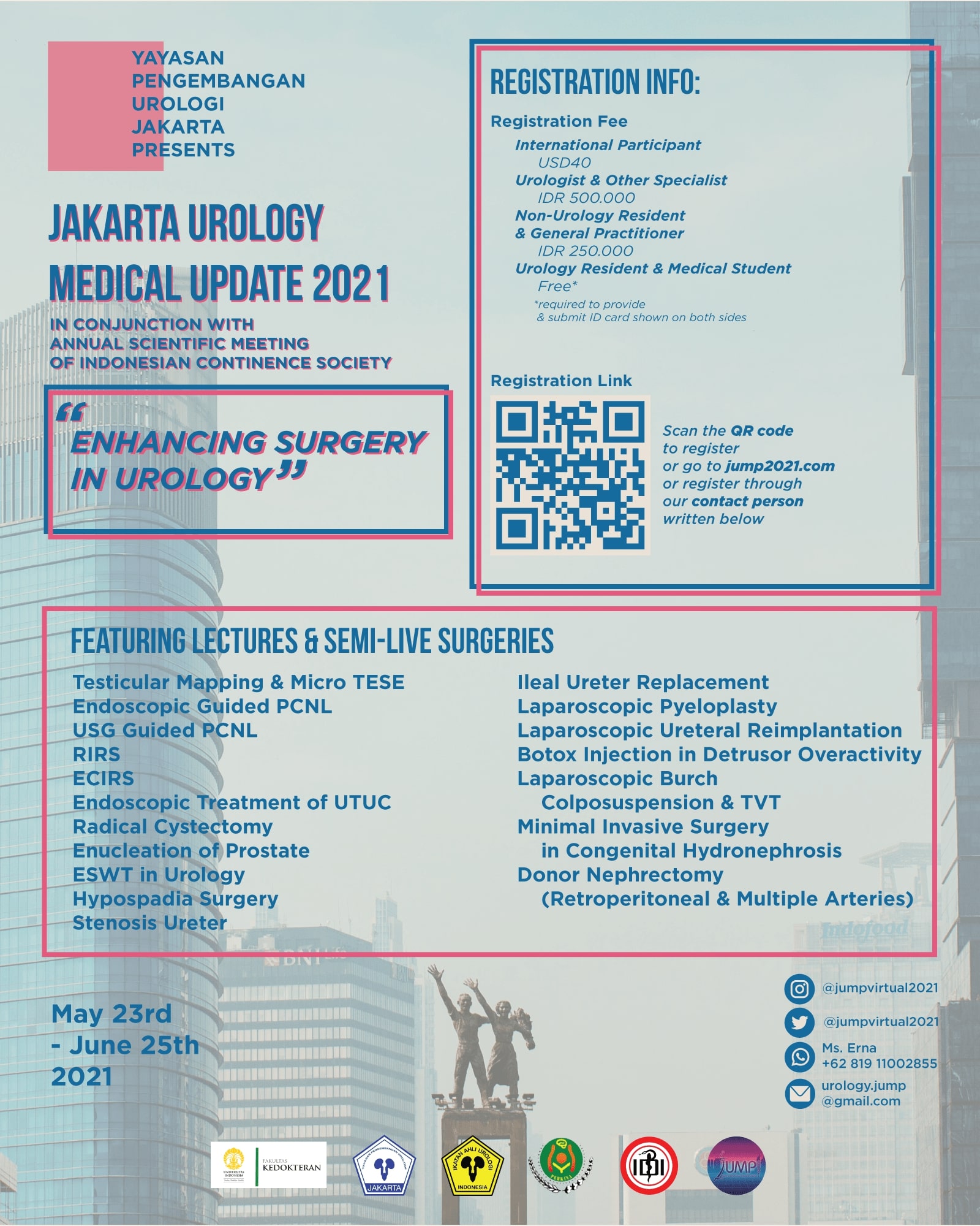 Jakarta Urology Medical Update (JUMP) 2021, in conjunction with Annual Scientific Meeting of Indonesian Continence Society (PERKINA), is a concrete form of our endeavors to continue to contribute scientific education concerning the most advanced findings and developments in the specialty of urology.
