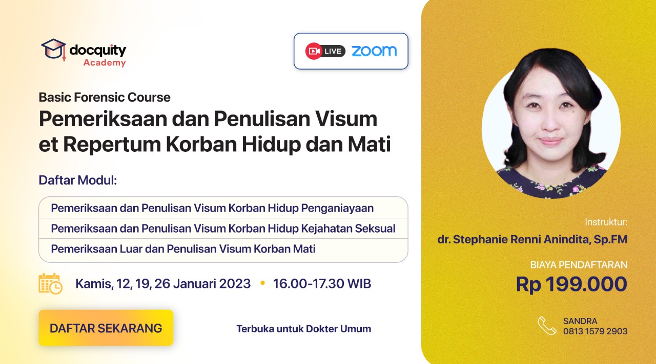 Tiga kelas bersama dr. Stephanie Renni Anindita, Sp.FM hanya dengan Rp 199.000,-.